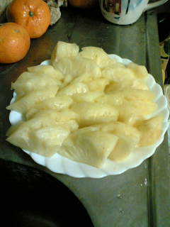 むき方がわからなかったので、「パイナップル むき方」とグルグル検索してみたら、たくさん見つかった。何通りかあるらしいが、一番ゴミが出なさそうな方法を明日試してみることにする。