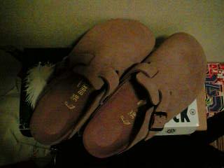 前記のビルケンはベロア素材で「雨に弱いので雨の日は避けて下さい」と店員さんに言われていたのだが、今日早速デビューさせようと思っていたのに起きたら雨降っているしー