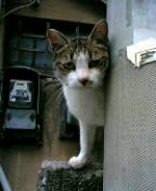 門柱の上でデローンと寝ていたので、シャッターチャンスとばかりに携帯を取り出すも、撮るより先に気づかれ、体勢を変えられた。逃げるかと思いきや、ニャーと鳴いて寄ってきたのでパチリ。ちょっと遊んできた。人なつこいなあ〜初いヤツめ!