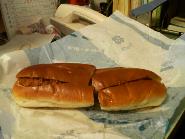 コロッケは1つ140円で、サンドにすると240円也。機会があったら是非お試しあれ。